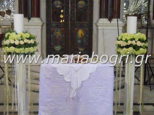 Γάμος στον Αγ. Νικόλαο στον Πειραιά, δεξίωση Κτήμα Μαρτίδη , κεριά, λευκές αλστρομέριες, μπομπονιέρα με δαντέλα, τραπέζι ευχών με κουφέτα και μπεζέδες
