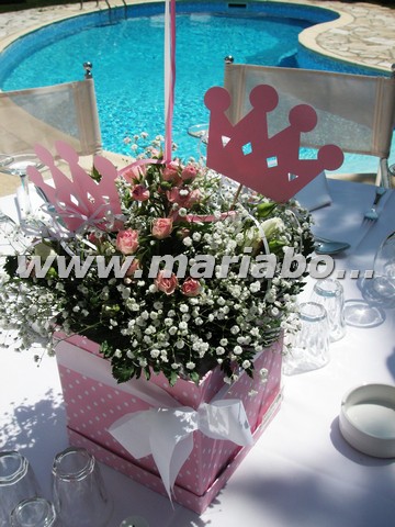 Διακόσμηση Βάπτισης / Θέμα - Πριγκίπισα / με κορόνες σε ροζ πουά κουτί
