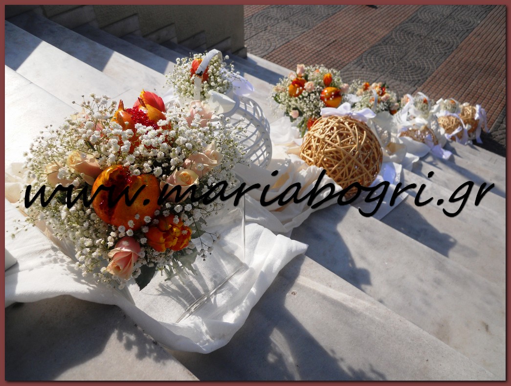 ΓΑΜΟΣ ΣΤΗΝ ΕΚΚΛΗΣΙΑ ΤΗΣ ΑΓΙΑΣ ΠΑΡΑΣΚΕΥΗΣ , ΔΕΞΙΩΣΗ ΣΤΟ ΚΤΗΜΑ ΕΥΠΟΛΙΣ , ΡΟΔΙΑ, ΨΑΘΙΝΕΣ ΠΛΕΧΤΕΣ ΜΠΑΛΕΣ, ΠΟΡΤΟΚΑΛΙ ΚΟΚΚΙΝΕΣ ΤΟΥΛΙΠΕΣ ΚΑΙ ΓΥΨΟΦΥΛΛΗ, ΣΤΡΟΓΓΥΛΑ ΦΑΝΑΡΙΑ